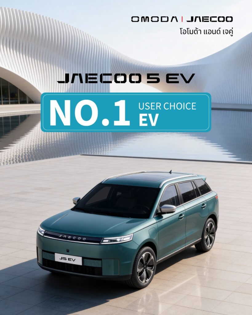 ขณะเดียวกัน ในช่วงเดือน พฤศจิกายน-ธันวาคม 2568 OMODA & JAECOO ยังสามารถก้าวขึ้นสู่ตำแหน่ง แบรนด์รถยนต์ไฟฟ้าอันดับ 1 จากยอดจดทะเบียนรถไฟฟ้าใหม่ในประเทศไทย ได้สำเร็จ นับเป็นอีกหนึ่งความสำเร็จสำคัญที่ตอกย้ำศักยภาพของแบรนด์ในการแข่งขันในตลาดรถไฟฟ้าที่มีอัตราการเติบโตสูง และสะท้อนถึงความแข็งแกร่งของเครือข่ายผู้จำหน่าย ระบบบริการหลังการขาย รวมถึงความสามารถในการส่งมอบผลิตภัณฑ์ที่ตรงกับความต้องการของตลาดอย่างต่อเนื่อง