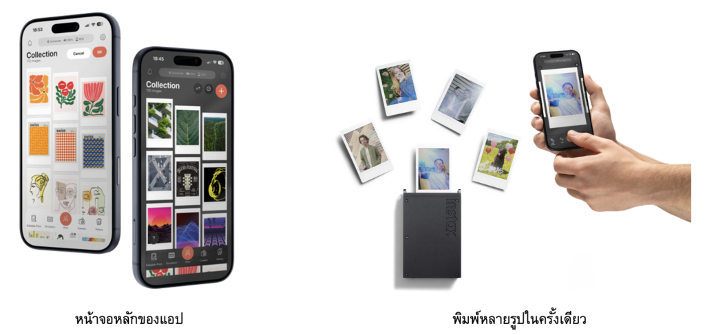 นอกจากนี้ instax mini Link+ ทำให้การพิมพ์ภาพเป็นมากกว่าการบันทึกความทรงจำ ด้วยฟังก์ชัน Simulation (การจำลองการจัดวาง) ช่วยให้ผู้ใช้งานเริ่มต้นจากการสร้างคอลเลกชันภาพในแอป และวางแผนการจัดวางภาพฟิล์ม instax ล่วงหน้าก่อนสั่งพิมพ์ ไม่ว่าจะนำไปใส่กรอบรูปหรือจัดวางในเคสมือถือ สามารถมองเห็นภาพการใช้งานจริงได้ตั้งแต่ต้น ช่วยให้การพิมพ์ภาพกลายเป็นส่วนหนึ่งของการตกแต่งพื้นที่และไลฟ์สไตล์ในชีวิตประจำวันได้อย่างง่ายดายยิ่งขึ้น