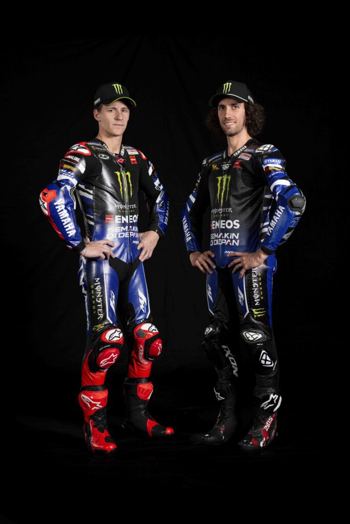 สำหรับ มอนสเตอร์ อีเนอร์จี้ ยามาฮ่า โมโตจีพี ในฐานะทีมโรงงานของยามาฮ่า จะยังคงใช้งานนักบิดสองคนเดิม ได้แก่ ฟาบิโอ กวาร์ตาราโร แชมป์โลกพรีเมียร์คลาส 1 สมัย หมายเลข 20 และทีมเมทชาวสเปน อเล็กซ์ รินส์ หมายเลข 42
