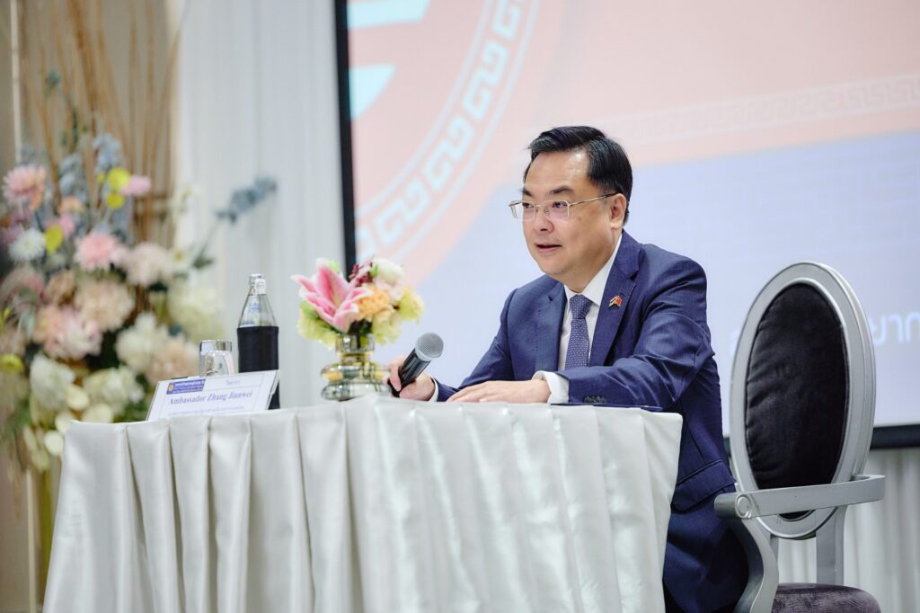 ฯพณฯ จาง เจี้ยนเว่ย เอกอัครราชทูตสาธารณรัฐประชาชนจีนประจำประเทศไทย กล่าวปาฐกถาพิเศษในพิธีเปิดหลักสูตรว่า ความสัมพันธ์ไทย–จีนในปัจจุบันกำลังอยู่ในช่วงเวลาที่ดีที่สุดในประวัติศาสตร์ ภายใต้การนำเชิงยุทธศาสตร์ของผู้นำทั้งสองประเทศ โดยในช่วงไม่กี่ปีที่ผ่านมา ได้เกิดเหตุการณ์สำคัญที่มีความหมายยิ่งต่อความสัมพันธ์ทวิภาคี เมื่อประธานาธิบดีสี จิ้นผิง แห่งสาธารณรัฐประชาชนจีน เดินทางเยือนประเทศไทยอย่างเป็นทางการ และต่อมา พระบาทสมเด็จพระวชิรเกล้าเจ้าอยู่หัว รัชกาลที่ 10 ได้เสด็จพระราชดำเนินเยือนประเทศจีนอย่างเป็นทางการเป็นครั้งแรก สะท้อนถึงความไว้วางใจ ความเคารพซึ่งกันและกัน และสายสัมพันธ์อันแน่นแฟ้นระหว่างสองประเทศ การแลกเปลี่ยนการเยือนในระดับผู้นำสูงสุดดังกล่าว เป็นหมุดหมายสำคัญที่ยกระดับความสัมพันธ์จีน–ไทยให้ก้าวไปสู่การสร้างประชาคมที่มีอนาคตร่วมกันอย่างแท้จริง และวางรากฐานที่มั่นคงให้กับความร่วมมือในทุกมิติ ทั้งด้านการเมือง เศรษฐกิจ การค้า การลงทุน และการพัฒนาที่ยั่งยืนในระยะยาว
