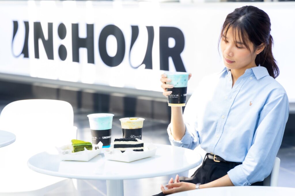 นอกจากนี้ The M.O.V.E. by Honda ยังยกระดับประสบการณ์ไลฟ์สไตล์ผ่าน The M.O.V.E. by Honda x UNHOUR ที่ได้คอลแลปกับร้าน UNHOUR คาเฟ่ชื่อดังที่โดดเด่นด้วยสไตล์อันเป็นเอกลักษณ์ ถ่ายทอดเมนูคอนเซปต์ใหม่ภายใต้แนวคิด Sky Land Sea ชวนผู้เยี่ยมชมเปิดประสบการณ์การลิ้มรสแห่งอนาคต ผ่านซิกเนเจอร์ดริงก์และขนมหวานสไตล์ญี่ปุ่นที่รังสรรค์อย่างพิถีพิถัน จากแรงบันดาลใจในวิสัยทัศน์ของฮอนด้าในการขยายขอบเขตการเดินทางทั้งทางบก ทางน้ำ และทางอากาศ พร้อมเมนูเอ็กซ์คลูซีฟที่มีให้สัมผัสเฉพาะภายใน The M.O.V.E. by Honda เท่านั้น