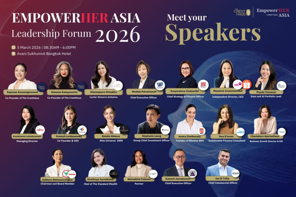 The CrestHaus เปิดประสบการณ์กับสุดยอดเวทีเสวนารวมผู้หญิงเก่งแนวหน้าระดับบอร์ดและผู้บริหารองค์กร จากองค์กรระดับชาติและเอเชีย ไว้มากที่สุด ในงานเสวนา “EmpowerHER Asia Leadership Forum 2026” ภายใต้แนวคิด “Write Your Next Chapter” สนับสนุนให้คุณ “กล้าเขียนอนาคตการเป็นผู้นำในแบบฉบับของตัวเอง” พร้อมผลักดันให้ผู้หญิงก้าวข้ามขีดจำกัด กล้าคิดกล้าทำ และออกแบบกรอบความคิดใหม่ๆ จากผู้นำหญิงระดับบอร์ดและ C-Suite ที่ประสบความสำเร็จจากหลายองค์กร อาทิ  คุณกอบกาญน์ วัฒนวรางกูร ประธานกรรมการธนาคารกสิกรไทย และบริษัท โตชิบา ไทยแลนด์ จำกัด, คุณมุกดา ไพรัชเวทย์ ประธานเจ้าหน้าที่บริหาร บริษัทโอสถสภา จำกัด (มหาชน), คุณกันยารัตน์ โชคอุ่นกิจ ประธานเจ้าหน้าที่บริหารสายงานกลยุทธ์และการเงิน บจก.เดอะมอลล์ กรุ๊ป, คุณกนกกมล เลาหบูรณะกิจ กรรมการผู้จัดการ บริษัท ฟูจิตสึ (ประเทศไทย) จำกัด, คุณปิยดา ตันไสว Data and AI Portfolio Lead บริษัท ไอบีเอ็ม ดิจิตอล ทาเล้นท์ ฟอร์ บิสสิเนส จำกัด (IBMDT), คุณชลกร อภิชาติธรรม ผู้อำนวยการฝ่ายการตลาด ธุรกิจอาหารและขนมขบเคี้ยว เป๊ปซี่โค ภูมิภาคอินโดจีน, คุณเชอรี่ เข็มอัปสร สิริสุขะ และ คุณนาตาลี เกลโบวา นางงามจักรวาลปี 2548 เป็นต้น