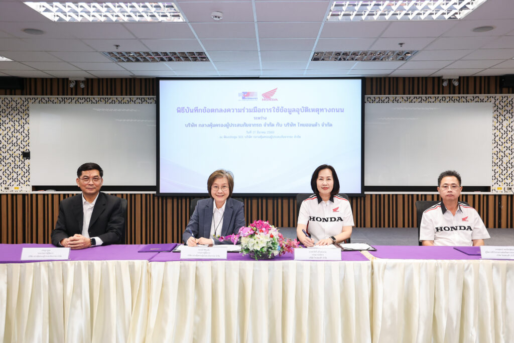 บริษัท ไทยฮอนด้า จำกัด ผู้ผลิตและจัดจำหน่ายรถจักรยานยนต์และเครื่องยนต์อเนกประสงค์ฮอนด้าในประเทศไทย เดินหน้าสานต่อพันธกิจด้านความปลอดภัยทางถนน ด้วยการลงนามบันทึกข้อตกลงความร่วมมือ (MOU) ร่วมกับ บริษัท กลางคุ้มครองผู้ประสบภัยจากรถ จำกัด เพื่อยกระดับการใช้ “ข้อมูลอุบัติเหตุทางถนน” ให้เกิดประโยชน์เชิงลึก ผ่านการนำข้อมูลมาวิเคราะห์หา “สาเหตุหลัก จุดเสี่ยง และพฤติกรรมการเกิดอุบัติเหตุ” อันจะนำไปสู่การพัฒนาแนวทางป้องกันที่ตรงจุด และช่วยลดอัตราการเสียชีวิตจากการใช้รถจักรยานยนต์ในประเทศไทยได้อย่างเป็นรูปธรรม