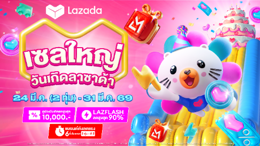 ลาซาด้าสานต่อบรรยากาศแห่งการเฉลิมฉลองวันเกิดปีที่ 14 ด้วยมหกรรมช้อปปิงสุดยิ่งใหญ่แห่งปีกับแคมเปญ “เซลใหญ่ วันเกิดลาซาด้า” เตรียมพบกับทัพดีลใหญ่สุดคุ้มและโปรโมชันสุดปัง ตั้งแต่วันที่ 24 มีนาคม (2 ทุ่ม) – 31 มีนาคม 2569 โดยมีไฮไลต์ที่ไม่ควรพลาด อาทิ คูปองส่วนลดสูงสุด 10,000 บาท* พร้อมดีลพิเศษจาก LazMall ลดสูงสุด 35%* LazFlash ลดสูงสุดถึง 90%* และดีลส่วนลดพิเศษจากแบรนด์ดัง ลดแรง 6 ชั่วโมงแรก (เริ่ม 2 ทุ่ม – ตี 2) ของวันที่ 24 มีนาคมนี้เท่านั้น ช้อปแคมเปญเซลใหญ่ วันเกิดลาซาด้าได้ที่ Link