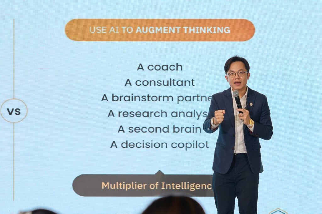 สุดท้าย ดร.วิโรจน์ จิรพัฒนกุล ผู้ร่วมก่อตั้งและประธานกลุ่มบริษัท Skooldio ได้เน้นถึงบทบาทของ Generative AI ในการยกระดับศักยภาพ SME ก้าวไปอีกขั้น โดยสามารถทำหน้าที่เป็นผู้ช่วยอัจฉริยะ ทั้งด้านการวิเคราะห์ข้อมูล การสร้างคอนเทนต์ การพัฒนาเทคโนโลยี และการสนับสนุนการตัดสินใจทางธุรกิจ สำหรับธุรกิจร้านอาหาร AI สามารถนำมาประยุกต์ใช้ได้หลากหลายด้าน เช่น การสรุปรีวิวลูกค้า การสร้างคำอธิบายเมนู การวิเคราะห์ยอดขาย และการพัฒนาระบบอัตโนมัติผ่านแพลตฟอร์ม Low-code / No-code อย่างไรก็ตาม ผู้ประกอบการจำเป็นต้องกำหนดบริบทและแนวทางการใช้งาน AI ให้เหมาะสม เพื่อวางกลยุทธ์ ลดต้นทุน และสร้างความได้เปรียบในการแข่งขันอย่างยั่งยืน