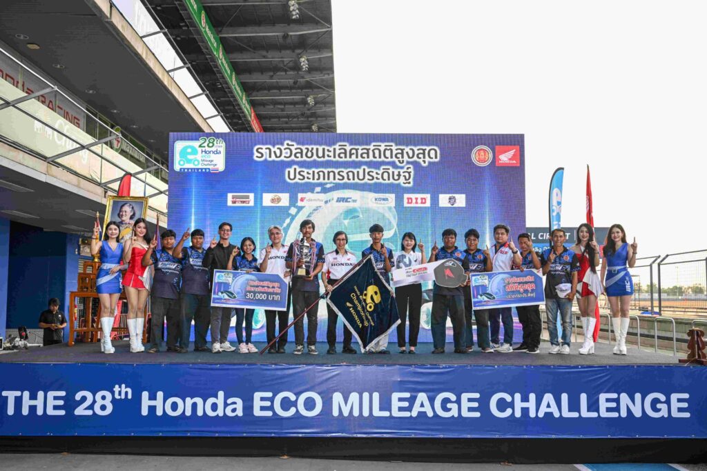 ไทยฮอนด้า ร่วมกับสำนักงานคณะกรรมการการอาชีวศึกษา กระทรวงศึกษาธิการ และตัวแทนจำหน่ายรถจักรยานยนต์ฮอนด้าทั่วประเทศ จัดการแข่งขัน “ฮอนด้าประหยัดเชื้อเพลิง (Honda Eco Mileage Challenge)” ครั้งที่ 28 ประจำปีการศึกษา 2568 เมื่อวันที่ 25–26 มีนาคมที่ผ่านมา ณ สนามช้าง อินเตอร์เนชันแนล เซอร์กิต จังหวัดบุรีรัมย์ ภายใต้กติกาใหม่ โดยมุ่งเน้น “ความปลอดภัย” ควบคู่กับ “ประสิทธิภาพการใช้พลังงาน” ส่งผลให้การแข่งขันเข้มข้นยิ่งขึ้น โดยในปีนี้ วิทยาลัยสารพัดช่างพิษณุโลก พลิกกลับมาคว้าแชมป์สถิติสูงสุดประเภทรถประดิษฐ์ หลังคว้าอันดับ 2 ปีการศึกษา 2567 พร้อมทำลายสถิติประหยัดเชื้อเพลิงสูงสุดด้วยตัวเลข 1,023.613 กิโลเมตรต่อลิตร ท่ามกลางการเข้าร่วมของเยาวชนกว่า 289 ทีมทั่วประเทศ นำโดย ดร.อารักษ์ พรประภา ประธานบริษัท ไทยฮอนด้า จำกัด พร้อมด้วยนายยศพล เวณุโกเศศ เลขาธิการคณะกรรมการการอาชีวศึกษา เป็นประธานในพิธีเปิด