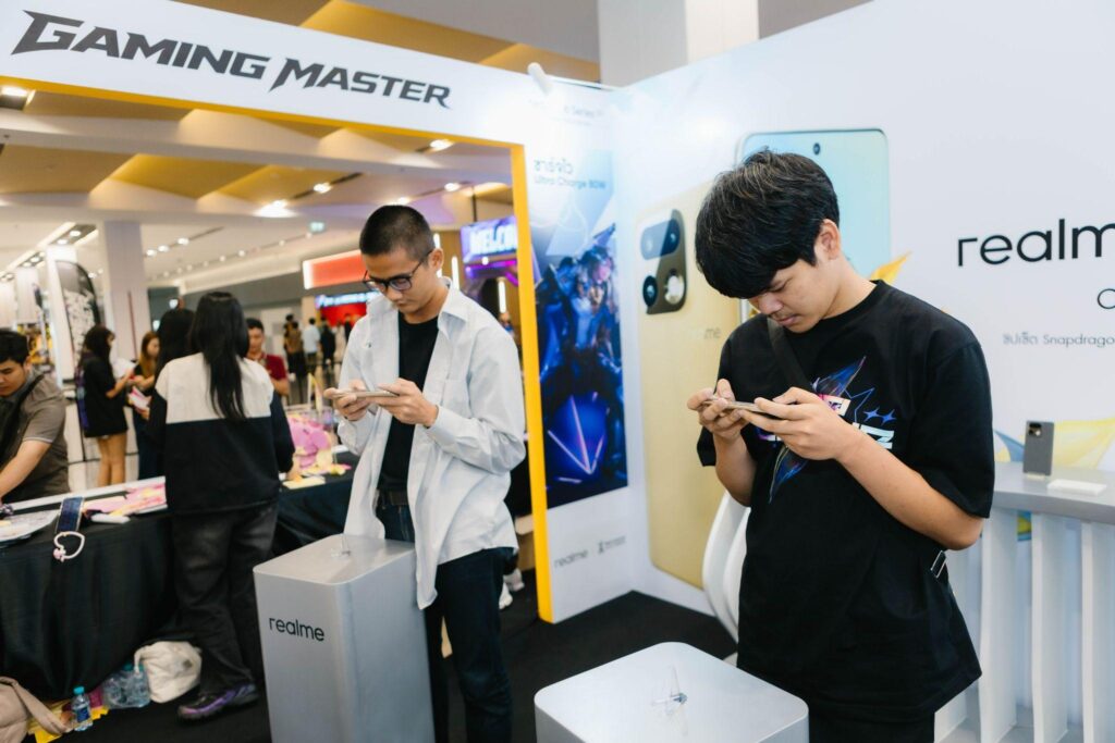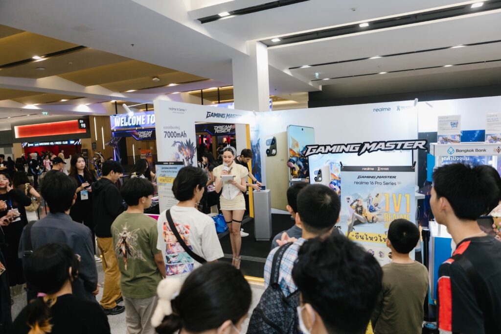 อีกหนึ่งไฮไลต์ที่ดึงดูดสายเกมอย่างแท้จริง คือการเปิดโอกาสให้ผู้เข้าร่วมงานได้ทดลองเล่น realme 16 Series 5G ในสถานการณ์จริง ไม่ว่าจะเป็นเกมกราฟิกหนักหรือจังหวะไฟต์สำคัญที่ต้องการความแม่นยำสูง โดยมาพร้อมชิปเซ็ต Qualcomm Snapdragon 7 Gen 4 ที่ให้ประสิทธิภาพระดับเรือธง รองรับการประมวลผลได้อย่างรวดเร็วและเสถียร เสริมด้วยหน้าจอรีเฟรชเรตสูงสุด 144Hz ที่ช่วยให้ภาพลื่นไหลต่อเนื่องทุกการเคลื่อนไหว พร้อมระบบระบายความร้อน AirFlow VC Cooling System ที่ควบคุมอุณหภูมิได้อย่างมีประสิทธิภาพ และแบตเตอรี่ขนาดใหญ่ 7000mAh ที่รองรับการเล่นเกมต่อเนื่องได้ยาวนาน ทุกการสัมผัสจึงตอบสนองได้อย่างแม่นยำ เฟรมเรตนิ่ง เล่นได้ลื่นไม่มีสะดุด ทำให้ผู้เล่นสามารถคุมเกมได้อย่างมั่นใจมากยิ่งขึ้น เป็นประสบการณ์ที่ไม่ได้แค่ “ลองเครื่อง” แต่คือการพิสูจน์พลังเกมมิ่งแบบของจริงในสนามจริง