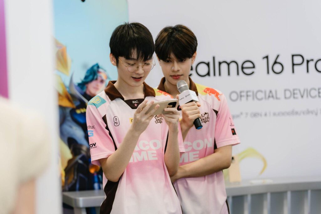 ความสนุกยังถูกอัปเลเวลต่อเนื่องด้วยกิจกรรม “realme x Bacon Time” ที่เปิดพื้นที่ให้แฟน ๆ ได้ใกล้ชิดกับโปรเพลเยอร์แบบเรียล ๆ ทั้งการพบปะ พูดคุย และร่วมกิจกรรมสุดเอ็กซ์คลูซีฟ พร้อมของที่ระลึกแบบลิมิเต็ดที่จัดมาเพื่อแฟนๆตัวจริงโดยเฉพาะ ไฮไลต์สำคัญคือโอกาสในการลงสนามแข่งร่วมกับทีม Bacon Time โดยใช้ realme 16 Series 5G เครื่องจริงในสถานการณ์แข่งขัน ทำให้ผู้เล่นได้สัมผัสฟีลลิ่งแบบโปรเพลเยอร์ ทั้งความลื่น ความนิ่ง และการตอบสนองที่แม่นยำในทุกจังหวะ ยิ่งตอกย้ำภาพของ realme ในฐานะแบรนด์ที่เข้าใจ DNA ของสายเกมอย่างแท้จริง ไม่ใช่แค่สร้างสมาร์ตโฟนที่แรง แต่สร้าง “ประสบการณ์เกมมิ่ง” ที่เชื่อมต่อเกมเมอร์ทุกระดับเข้าด้วยกัน พร้อมผลักดันให้ทุกคนอัปสกิลและไปได้ไกลกว่าเดิมในทุกไฟต์