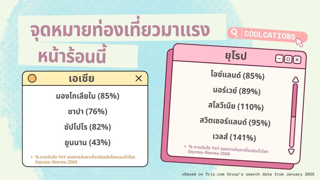 [1] อ้างอิงจากข้อมูลการค้นหาของ Trip.com Group เดือนมกราคม 2569